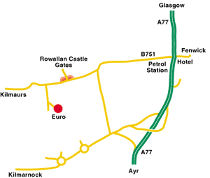 Our premises are situated in the surrounding countryside of Ayrshire, Scotland. We are located at Tannahill, Kilmaurs - within easy reach of Glasgow. If you would like to come and visit us, please follow the written directions and map below. |